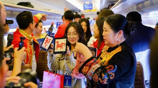 主题情景剧巧妙融入宁夏特色文旅资源,生动展现塞上江南的独特魅力;非遗传承人现场展示剪纸、泥哇呜、面塑等技艺,吸引旅客纷纷互动体验;“宁夏知识快问快答”“学一句宁夏话”等环节,更在欢声笑语中拉近了与旅客的距离。活动现场,宁夏文旅推介官还为旅客送上景区门票、特色文创、地道好物等礼包。